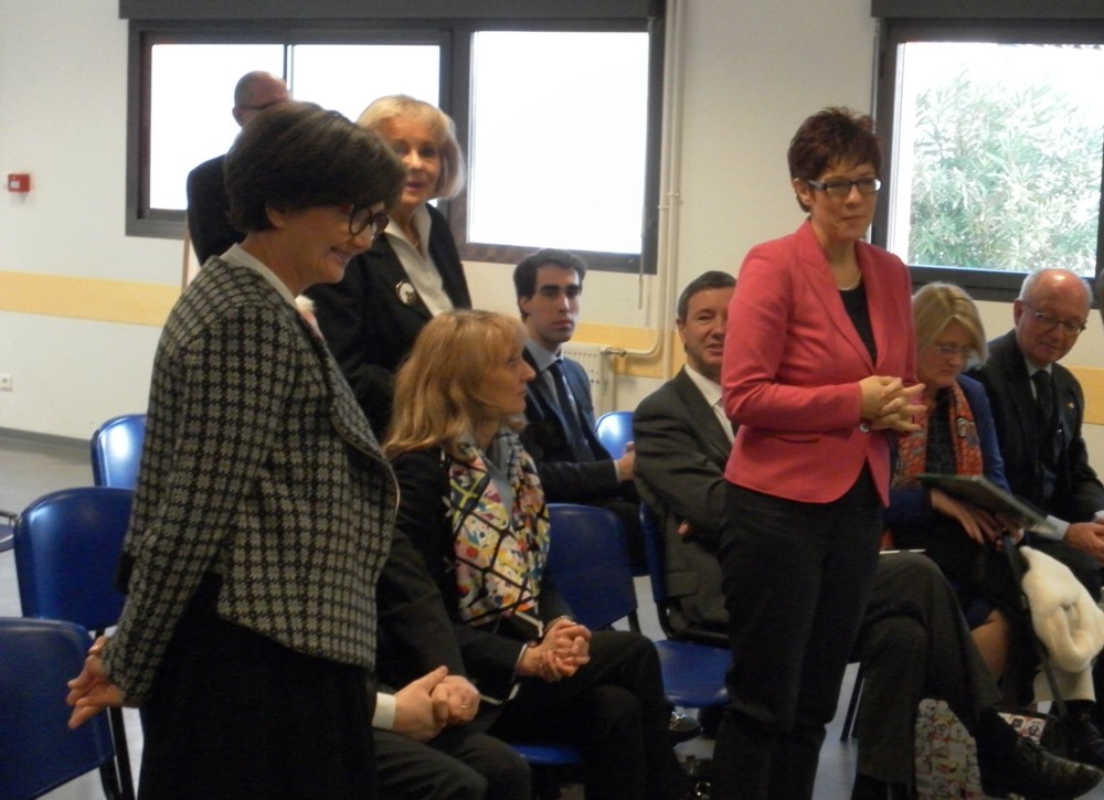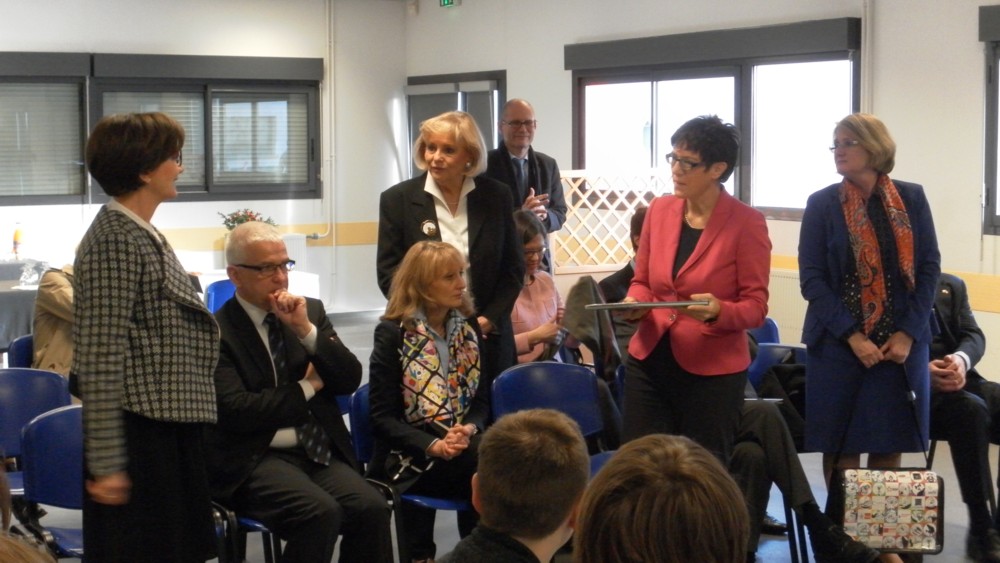 Lundi 20 janvier 2014, dans le cadre de la semaine franco-allemande, le collège Capeyron a accueilli Madame Annegret Kramp-Karrenbauer, plénipotentiaire de la République fédérale d’Allemagne, chargée des affaires culturelles, Ministre-Présidente du Land de Sarre et Monsieur Olivier Dugrip, recteur de l’Académie de Bordeaux.