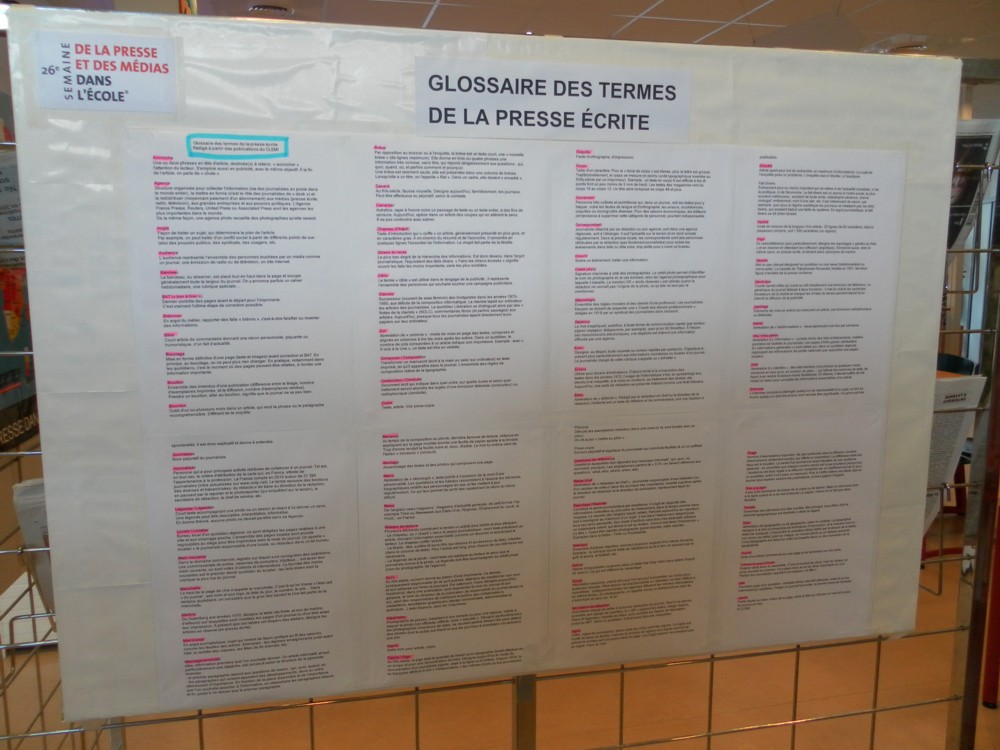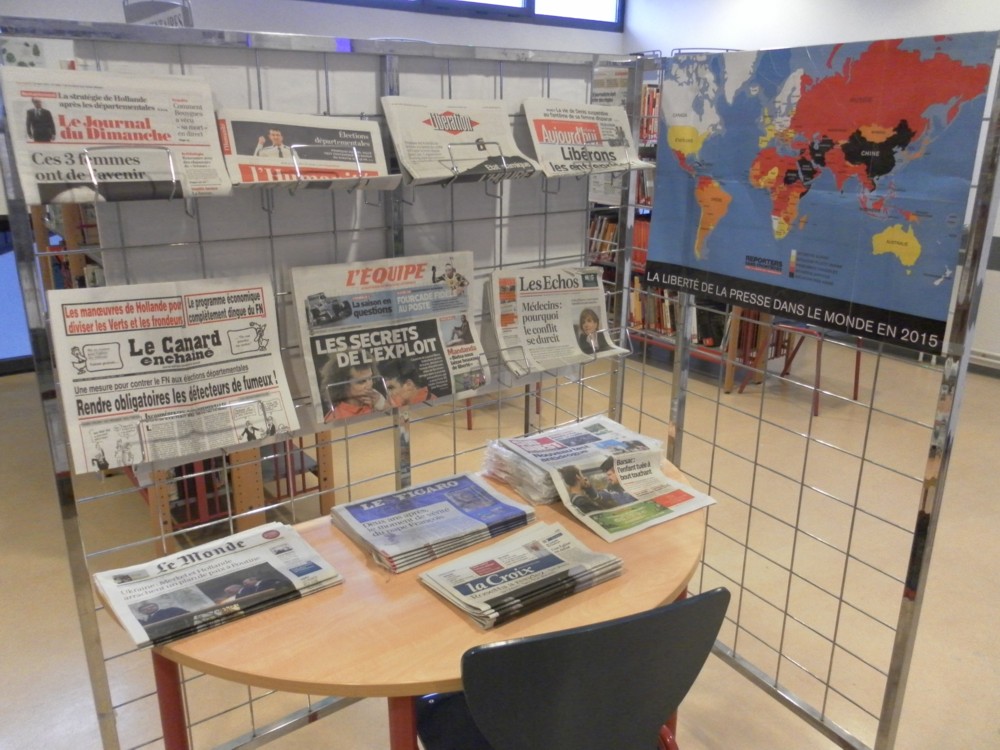 A cette occasion, le CDI recevra à partir du 17 mars un cartable de 33 périodiques (journaux et magazines) qui seront consultables par les élèves et dont les enseignants pourront se servir pour organiser des séquences pédagogiques.