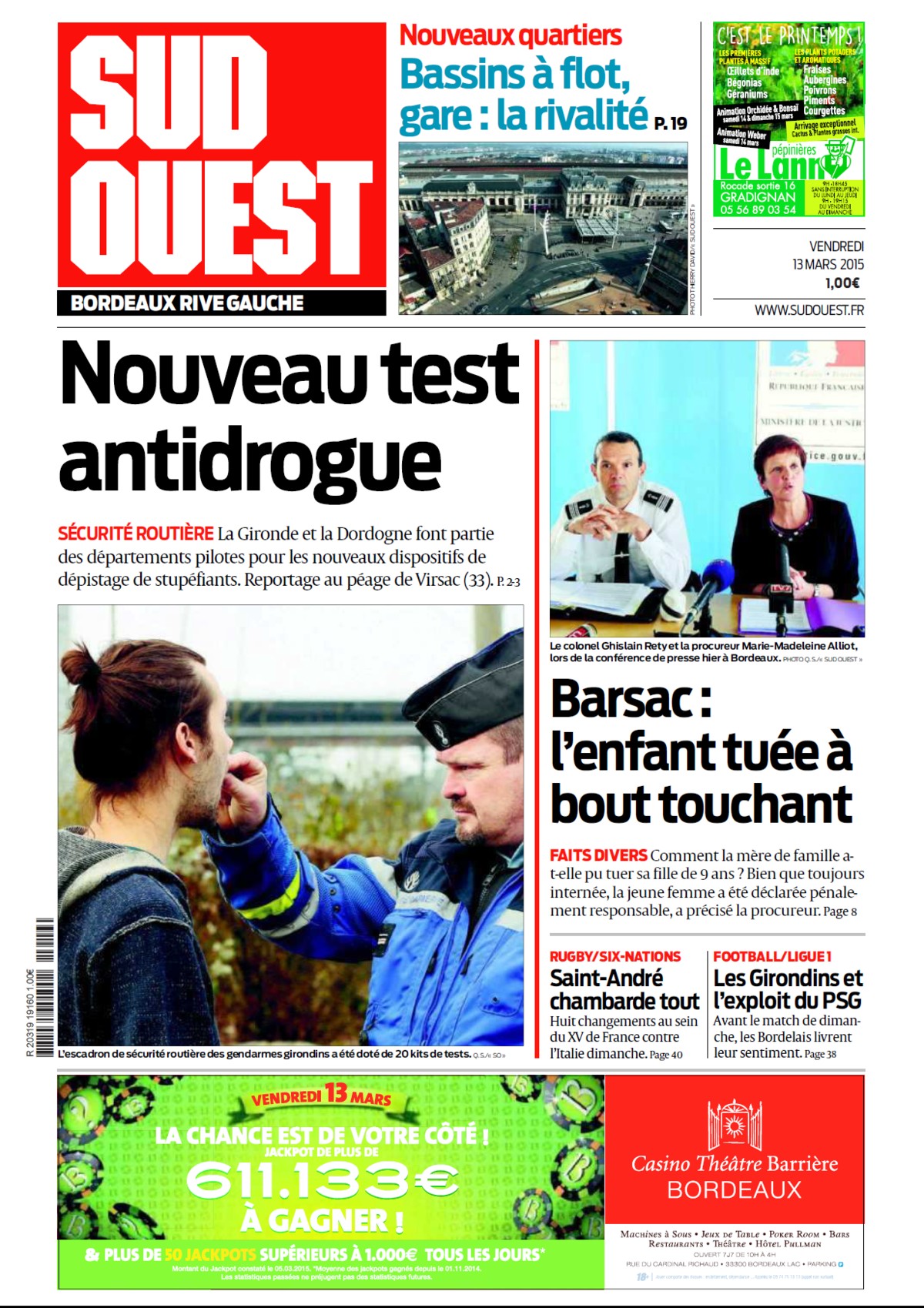A l’occasion de la 26e Semaine de la presse et des médias dans l’école® organisée par le CLEMI, Sud-Ouest offre aux élèves, y compris en dehors de sa zone de diffusion, le journal du 13 mars en version PDF, avec une page spéciale consacrée à l’éducation aux médias.